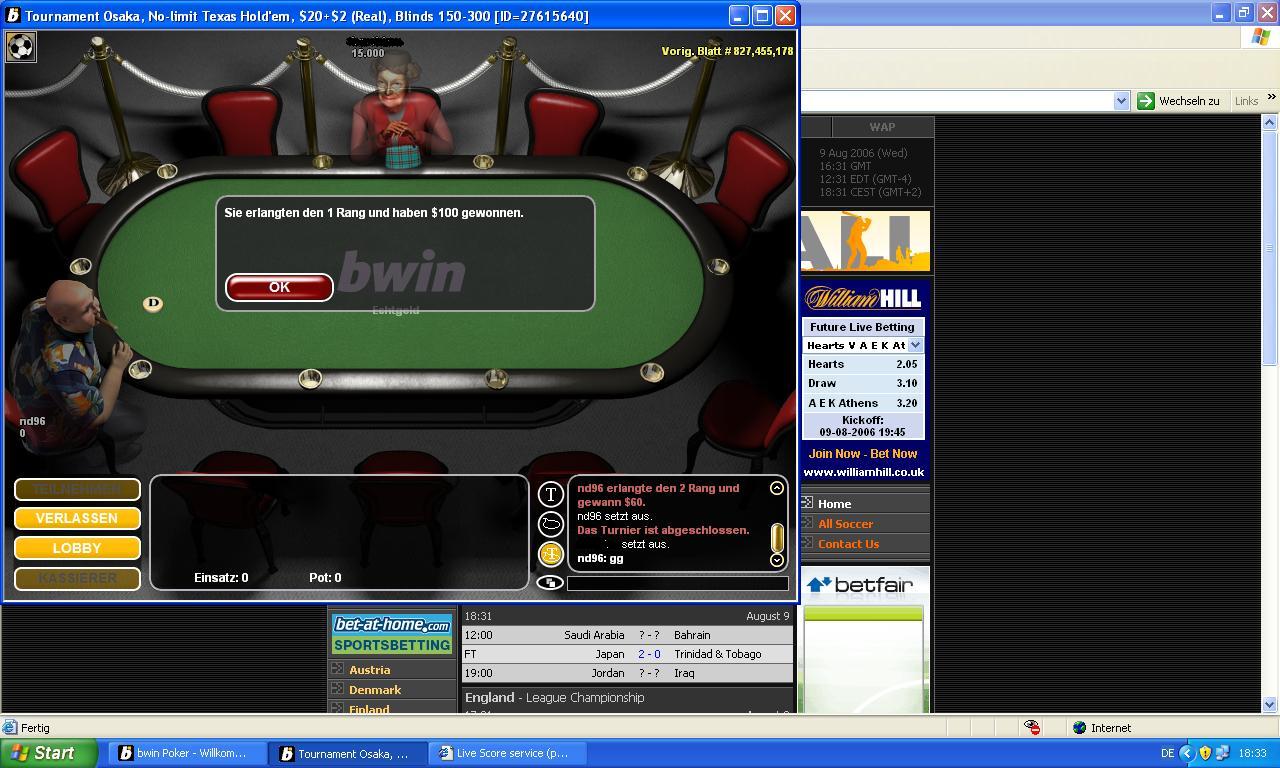 Hat jemand Lust bei bwin zu pokern?