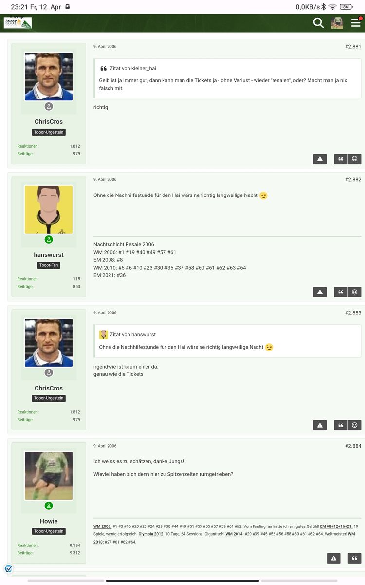 Ich lebe seit der WM2010 in den Staaten und kenne daher wenige Tooorler persönlich, aber die Erinnerungen an 2006 und 2010 sind echte Highlights. Jobinterview in München auf den Tag von #1 gelegt und genau in der Schussbahn von Lahms Tor gestanden. Stundenlang nachts F5 und irgendwann tatsächlich 2x HF Dortmund geschossen. In der Nähe von Christian Wörns gesessen und den Grosso-Schuss ins Herz live miterlebt. Und ein grandioser Monat in Südafrika mit Sonnenbrand in Polokwane und Schnee in Bloemfontain. Verspätete Zugfahrt Joburg - Cape Town weil jemand ein Stück Oberleitung geklaut hatte. Resale-Tickets mit wackligem WLAN geschossen und dann zum Ausdruckautomaten gefahren. Tickets getauscht in einem Tooor-Haus, leider weiß ich die usernames nicht mehr. Denke sugar war dabei. Suarez Hand auf der Linie live gesehen und neben einem Tooorler gesessen. Und so weiter und so fort. Cheers auf neue Erinnerungen in den kommenden Jahren! 2026 Heimspiel für mich.