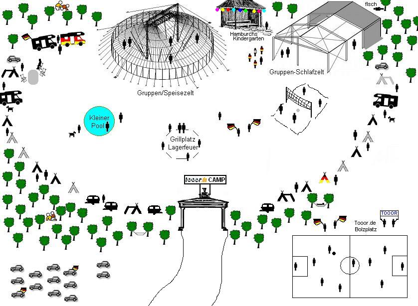 Stell mir schon mal so ne Zelt- und Wagenburg vor, in der Mitte ein Lagerfeuer und einen Fahnenmast mit tooor-Fahne