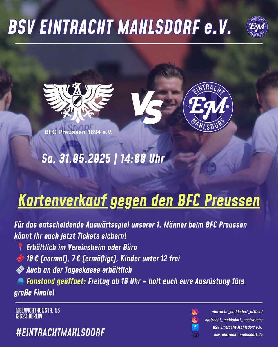 Wo kann man denn Tickets für den Kracher kommende Woche beim BFC im Voraus kaufen?