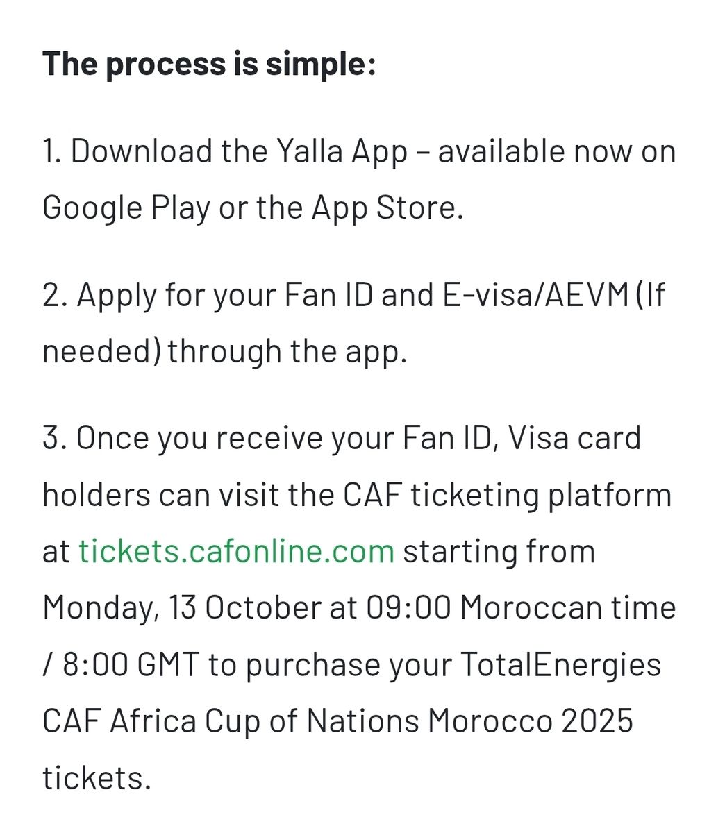 TotalEnergies CAF Africa Cup of Nations Morocco 2025 Tickets Sales open from Monday, 13 October with YALLA App now available