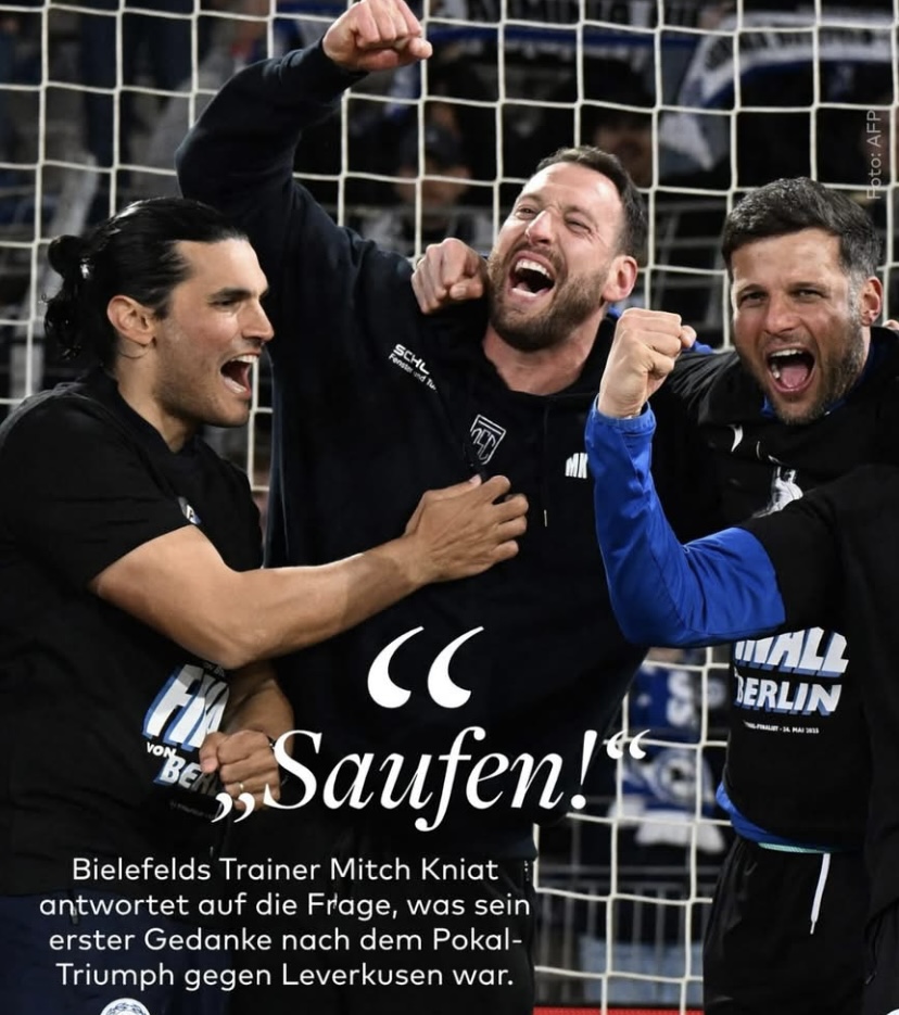 Er meinte warum, die Bielefelder sich nicht vorher schon die Kehlen 🍺 bewässert haben, nicht den Rasen…