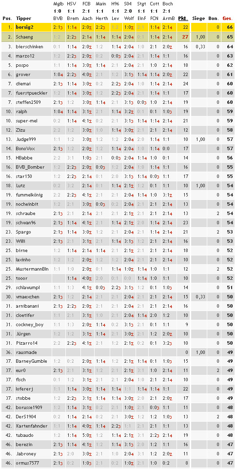 Vielen Dank für die Glückwünsche und Glückwunsch zurück an borsig2, unseren neuen Tabellenführer!