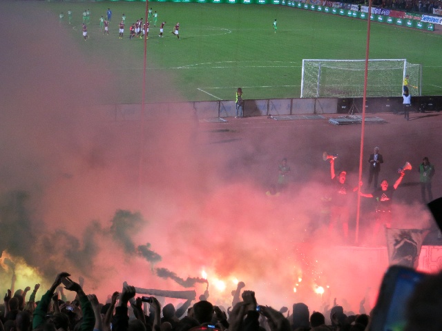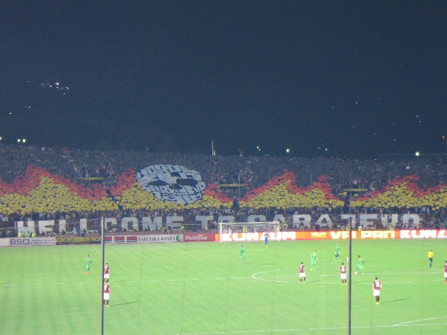 Die Stimmung seitens der Horde war wirklich genial. Trotz des weitläufigen Stadions und ohne Dach ein echter Lärm. Wahnsinn, was die für eine Stimmung machen. Für die Sarajevos war es aber auch das Spiel des Jahres. Die Choreo war auch cool. Supporttechnisch das beste, was ich bisher erlebt habe. :respekt: