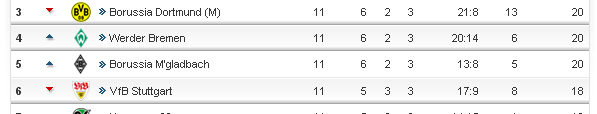 Bremen und Gladbach. ![]()