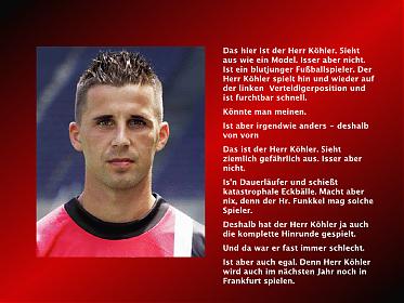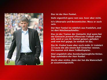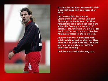 Im vorletzten Heimspiel der Saison empfängt unsere Eintracht am Mittwoch (20:00 Uhr)/Live in Premiere) DFB-Pokal- und UEFA-Cup-Finalist Werder Bremen. Trainer Friedhelm Funkel plauderte mit den Medienvertretern heute auf der Pressekonferenz u. a. über das mögliche Comeback von Ioannis Amanatidis.