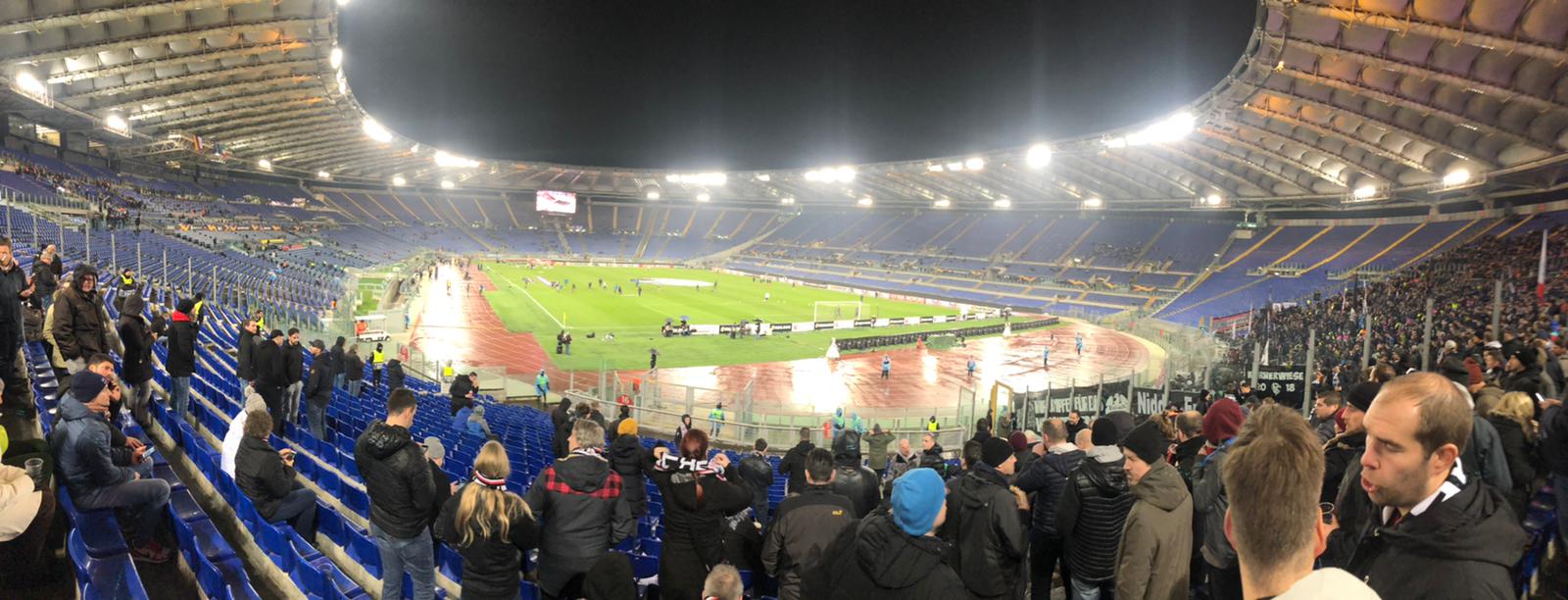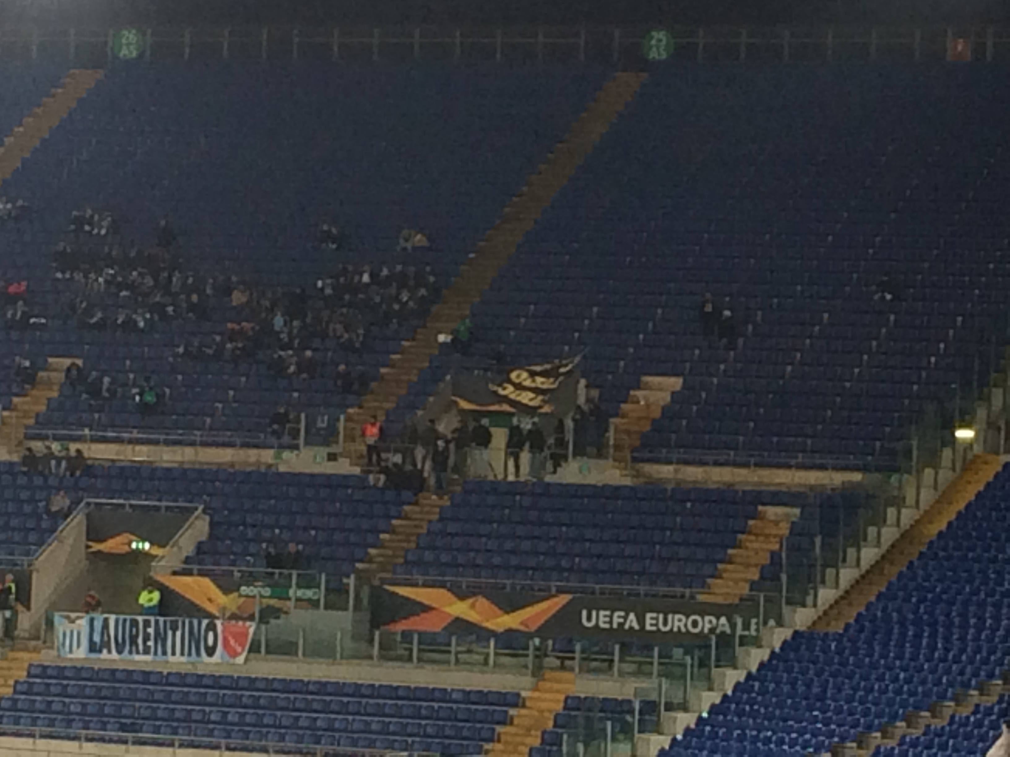 Bengalische auf Polizei, Ordner und Lazialies geworden, wobei die Gruppe die über die Gegentribüne kam, ganz klar der Auslöser war, durch ihre Provokationen.