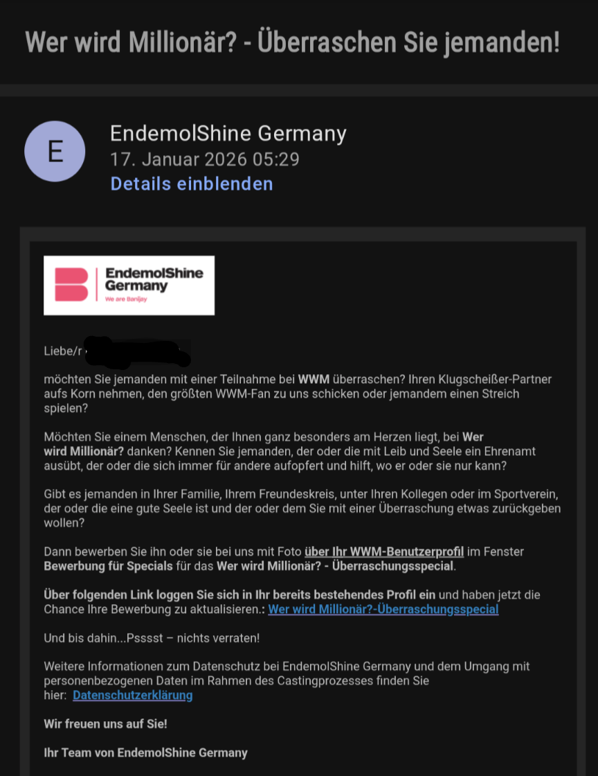 Ich möchte niemanden überraschen, ich möchte einfach selber eingeladen werden... ![]()