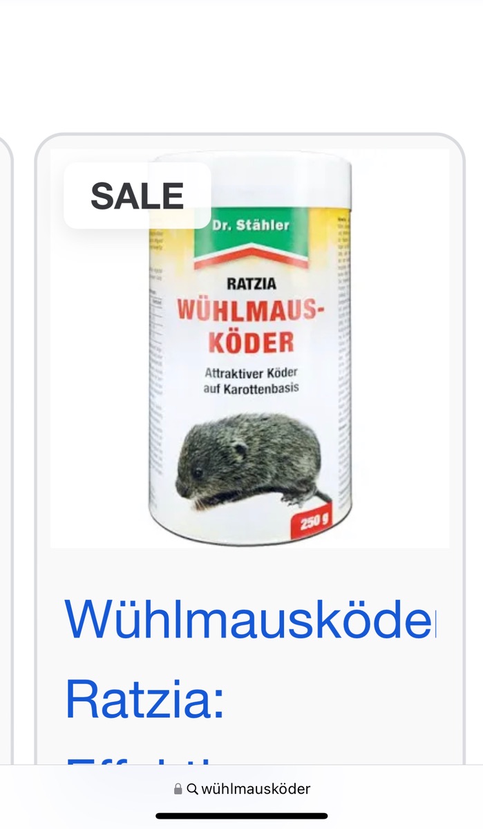 Wenn ihr Wühlmäuse im Garten habt, helfen Ratron LINSEN , wichtig das es Linse sind... Die müssen so weit und tief wie möglich in die Gänge gedrückt werden.