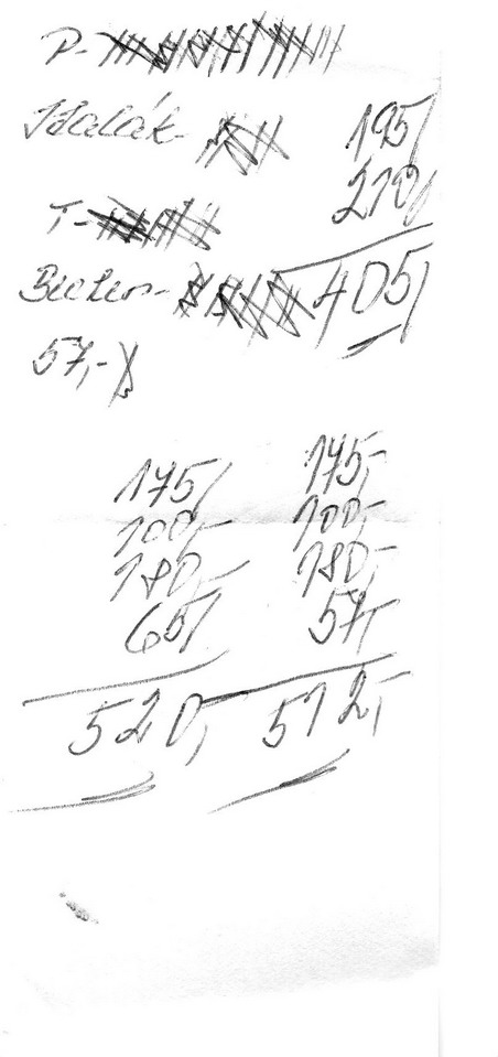 dat denk ich abba auch, wir warn 3 mann, oben dat p sind pivo, t steht für tonic - dat ham wir mit becherovka gemixt (becher), 4 salate (wegen der vitamine, einer hat zwei gegessen) und die 57 warn ne schachtel marlboro, und die uhr war noch nich 16 uhr als wir aus dem laden rausgeeiert sind, skifahrn macht spaß :mrgreen: