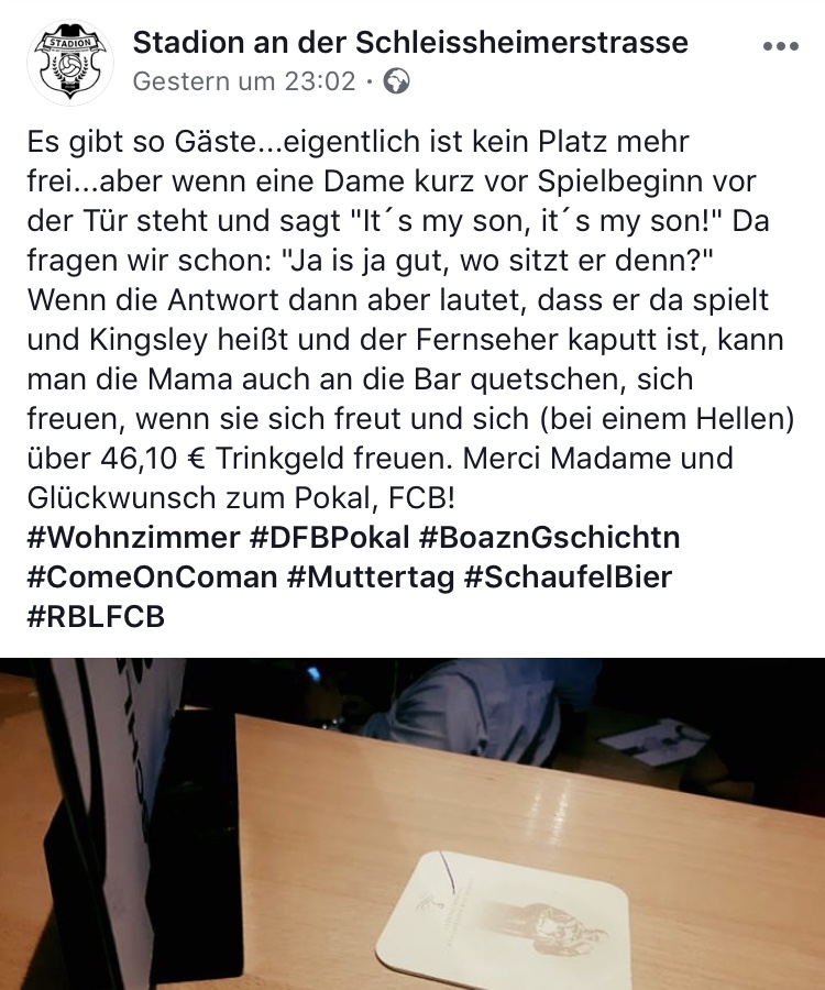 Mutter von Coman, in der bekanntesten Fußballkneipe in München..