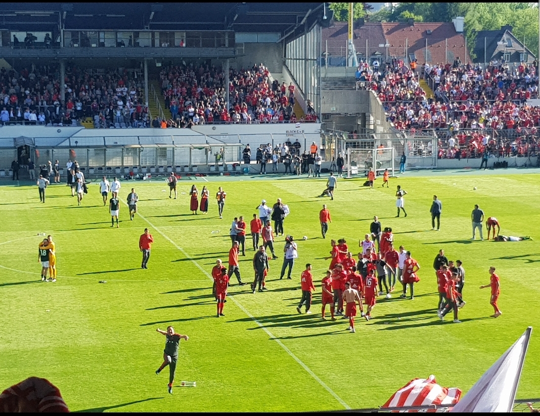 Viel besser wäre doch folgende Lösung: Das Spiel um 13.00 Uhr, um 16.00 Uhr die Meisterfeier und die Amateure dann, im Idealfall als Aufsteiger, mit auf den Balkon.