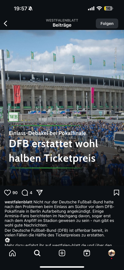 Ich habe leider kein Westfalen-Blatt Abo um den kompletten Artikel zu lesen, aber anscheinend gibt es vom DFB eine Reaktion auf die katastrophale Situation am Einlass beim Pokalfinale :gruebel: