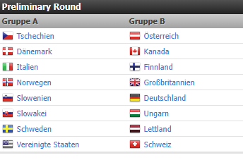 Gruppe A: Tschechien, Dänemark, Italien, Norwegen, Slowenien, Slowakei, Schweden , Kanada