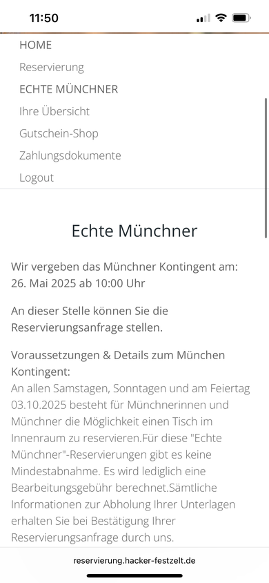 Für die Münchner hier interessant: Ab Montag 10 Uhr gibts die Münchner-Kontingent-Reservierungen im Hacker.