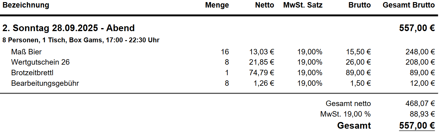 • Reservierung nur tischweise (10 Personen)