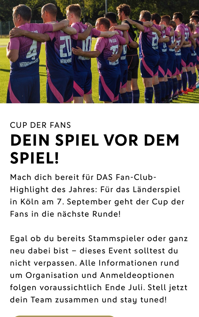 Kurzum, wer Bock hat, da bei uns mitzukicken, kann sich gerne per PN oder WA bei mir melden. Wir werden Freitag abends anreisen und dann drei Nächte im Gästehaus der DSHS sein, damit ist alles fußläufig erreichbar. Es wollen ja vermutlich einige ohnehin am Sonntag zum Länderspiel nach Köln kommen. Tickets hätte ich dafür auch noch. Ich würde mich jedenfalls freuen, wenn sich noch jemand findet. Soweit ich weiß, gibt es neben Fanclub Betreuerteams auch Mannschaften der eigenständigen Fanclubs.