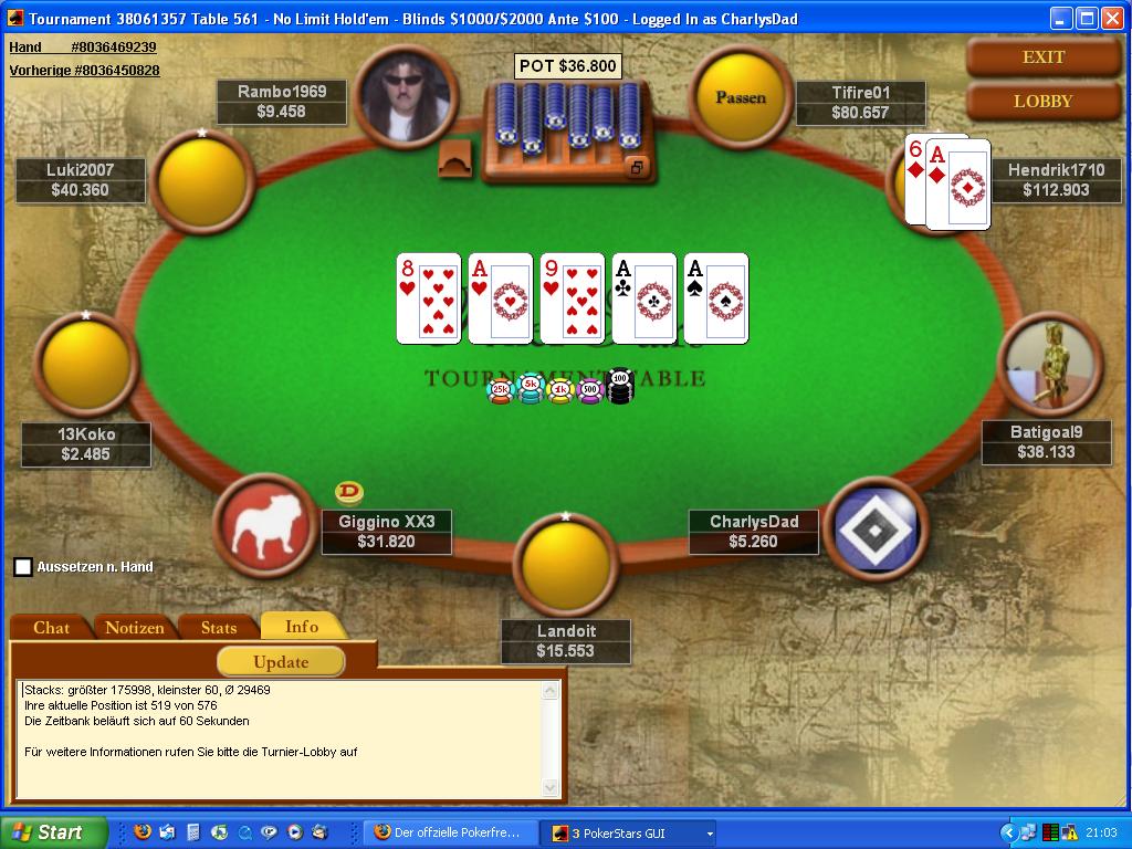 Dealer: CharlysDad hat das Turnier mit dem 480. Platz beendet