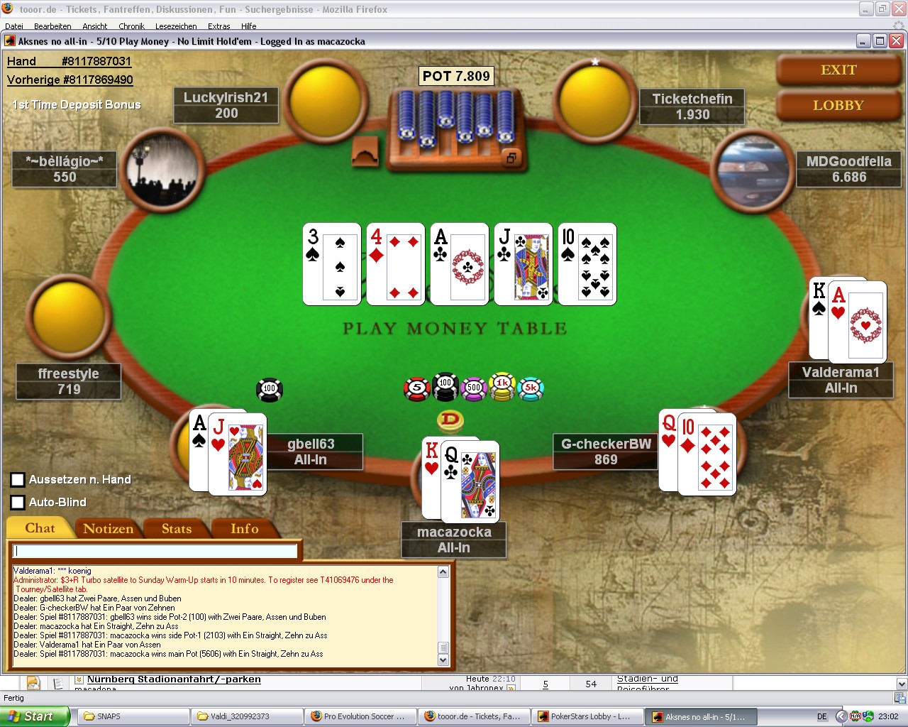 jo erste runde son penner all in ich mit und gewonnen ...:mrgreen: