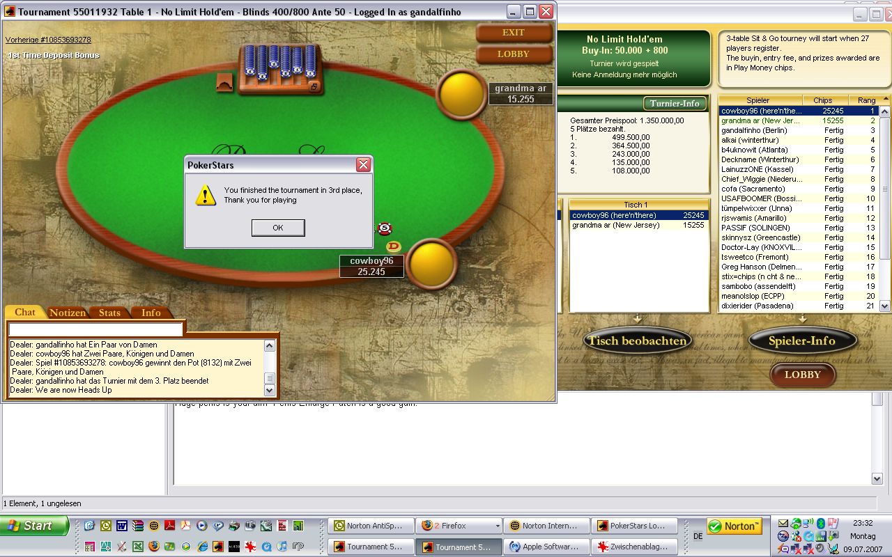 Am Pokerturnier darf man nur teilnehmen wenn man mindestens 1 mal bei nem realen Tooortreffen war, Du Mod-Lappen :mrgreen: