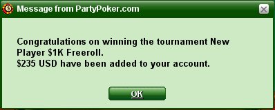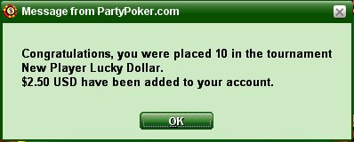 Yup, in 14 Minuten New Player Lucky Dollar tourney auf Partypoker :klatsch: