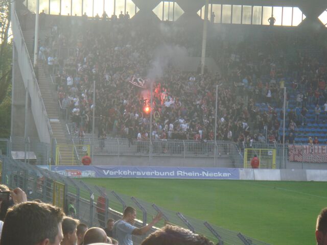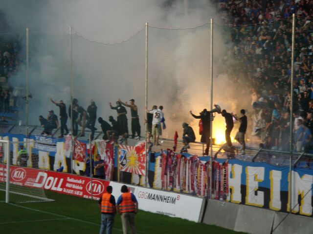 21:02: Mannheim. Das Heimspiel des SV Waldhof in der Fußball-Regionalliga West gegen den 1. FC Kaiserslautern II (Endstand 0:2) ist in der 56. Minute unterbrochen worden. Grund dafür waren FCK-Fans, die im Carl-Benz-Stadion Feuerwerkskörper zündeten und Gebüsch in Brand setzten. Polizei und Feuerwehr waren im Einsatz, ein Spielabbruch drohte. Erst nach 20 Minuten konnte die Partie fortgesetzt werden. (sko)