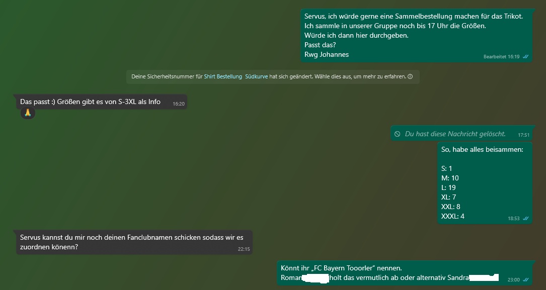 Bitte holt die Shirts auch wirklich ab, da ich keine mit in die Südkurve nehmen möchte.
