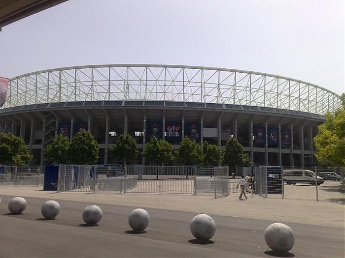 Das Stadion ist inzwischen schön abgeriegelt und auch schon teilweise mit dunkelblauen EURO 2008 Bannern eingpackt.