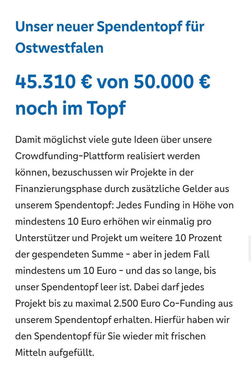 Gerade kam die erste Spende direkt aus Spexard rein :mrgreen::klatsch: