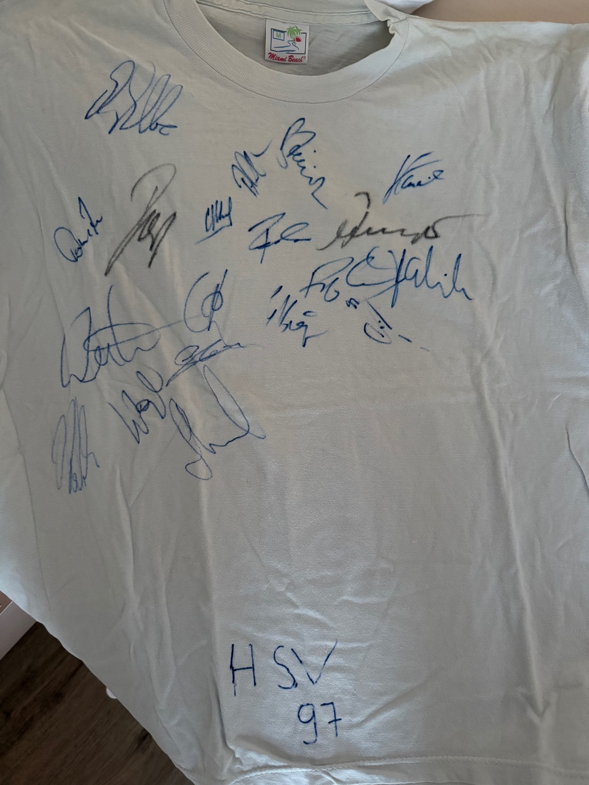Moin. Hab auf dem Dachboden meiner Eltern 2 Shirts gefunden, die ich als Kind von HSV Spielern signieren lassen habe. 96 und 97
