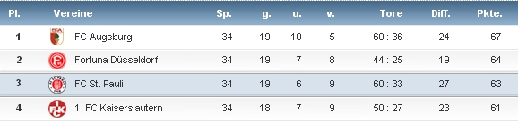 Naja Augsburg hat nur nen Punkt geholt und Pauli wird morgen verlieren.