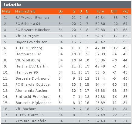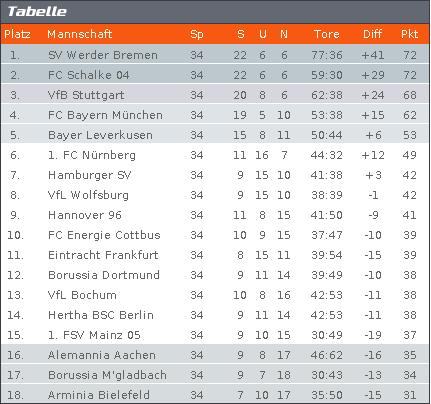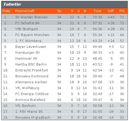 Mein Tipp für die Abschlusstabelle sieht so aus.