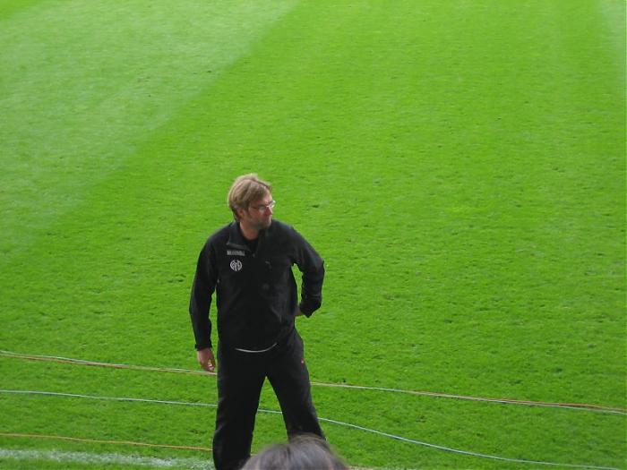 Okay, ich stand ca. 2 Meter weiter links. Also direkt vor Kloppo und dem Reporta :mrgreen: