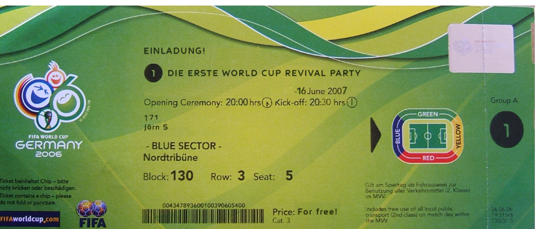 Hab dazu die Eintrittskarte vom Eröffnungsspiel genommen und diese in Photoshop halt erst mal einigermaßen gesäubert, um dann mit einer sehr ähnlichen Schrift wieder neue Sachen drauf zu schreiben.