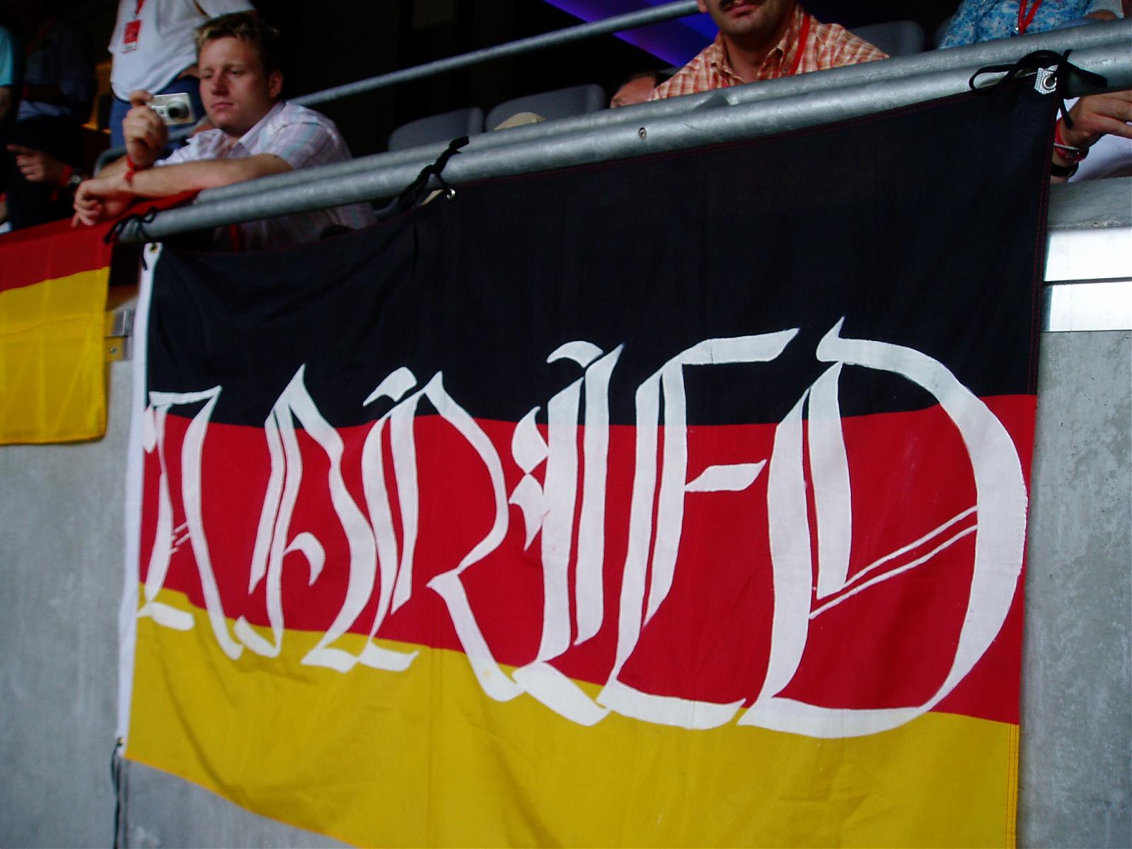 Ach ja, hab ich fast vergessen falls ihr diese Fahne im Stadion seht (Anried steht drauf:p: ), dann bin ich vor Ort!! Leider komm ich oft erst kurz vor Anpfiff und es gibt dann keinen Platz mehr, aber hin und wieder schaff ich es doch sie aufzuhängen:klatsch: