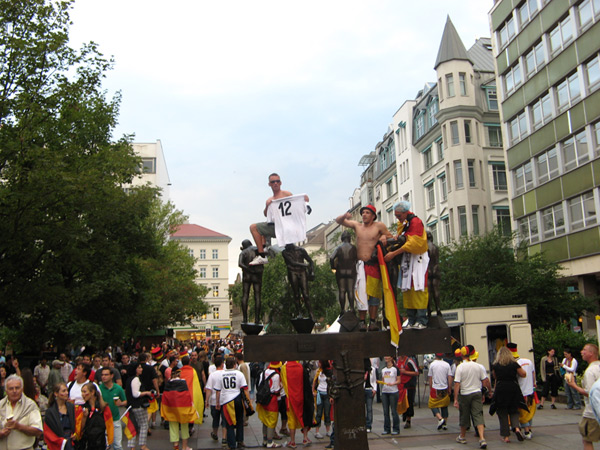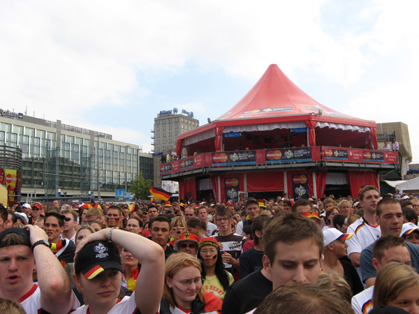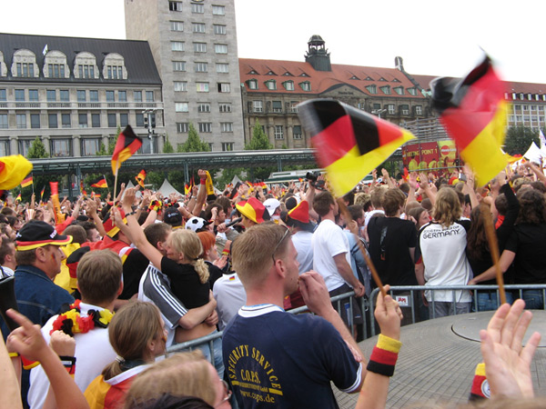 War mit nem Kumpel, der schon vor 6 Tagen mit dabei war bei Deutschland gegen Schweden, beim Fanfest aufm Leipziger Augustusplatz. Er sagte mir nach dem Spiel, ich sei ganz farblos nach dem Tor von Ayale geworden, als ich ihn ansah. Aber am Ende wurde wieder alles gut, Klose mit dem Kopf, Verlängerung und Elfmeterschießen.