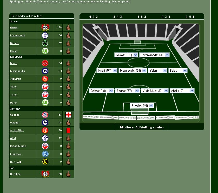 mein nachbar hat mich belabert, dass ich bei denen auch comunio mitspiele . natürlich habe ich mich vergewissert, ob ich damit gegen irgendwelche paragraphen verstosse :huebscher: :mrgreen: . aber scheinbar legal.