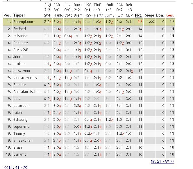 1. Raumplaner 2:24 3:04 2:1 1:13 0:0 1:04 1:22 2:0 2:1 17 1,00 0 17