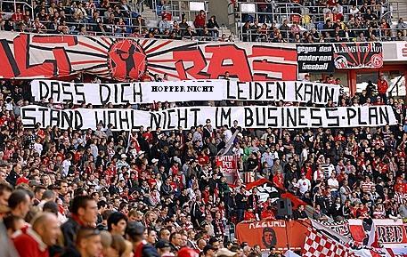 Wir (Dietmar und ich) haben nun mal verschiedene Ansichten und Meinungen, was Fußball, Fans und Tradition etc. angeht. Er setzt andere Prioritäten, er ist Unternehmer und sieht es als Möglichkeit Knete zu machen, was auch sein Recht ist ... gut finden muss man es trotzdem nicht.