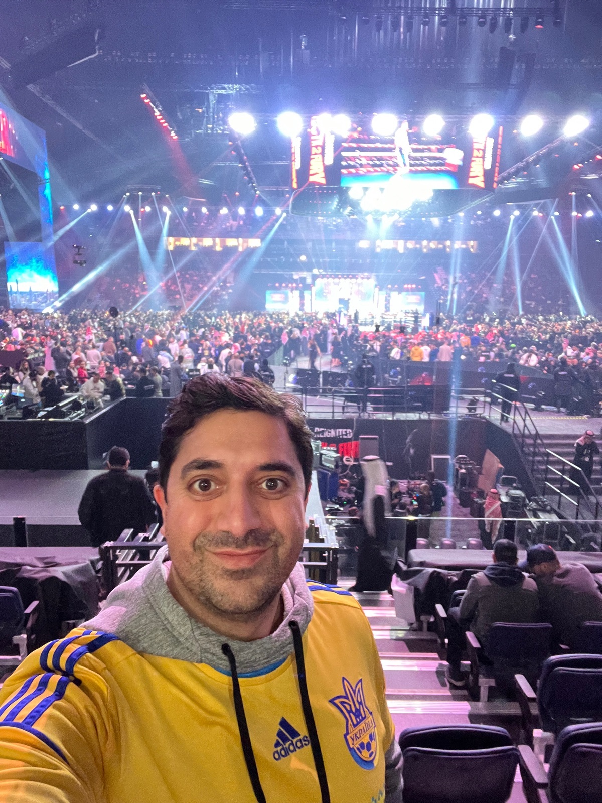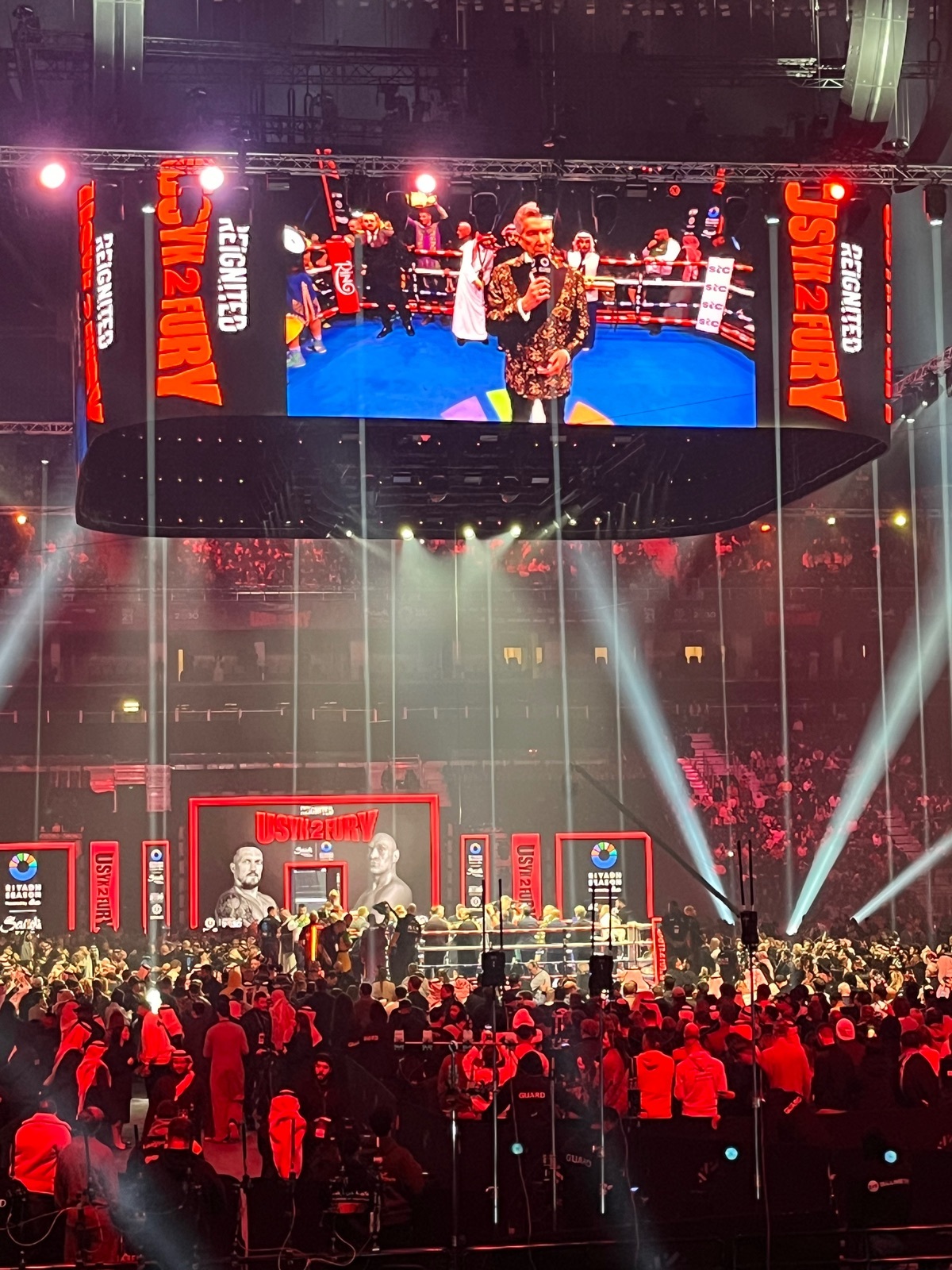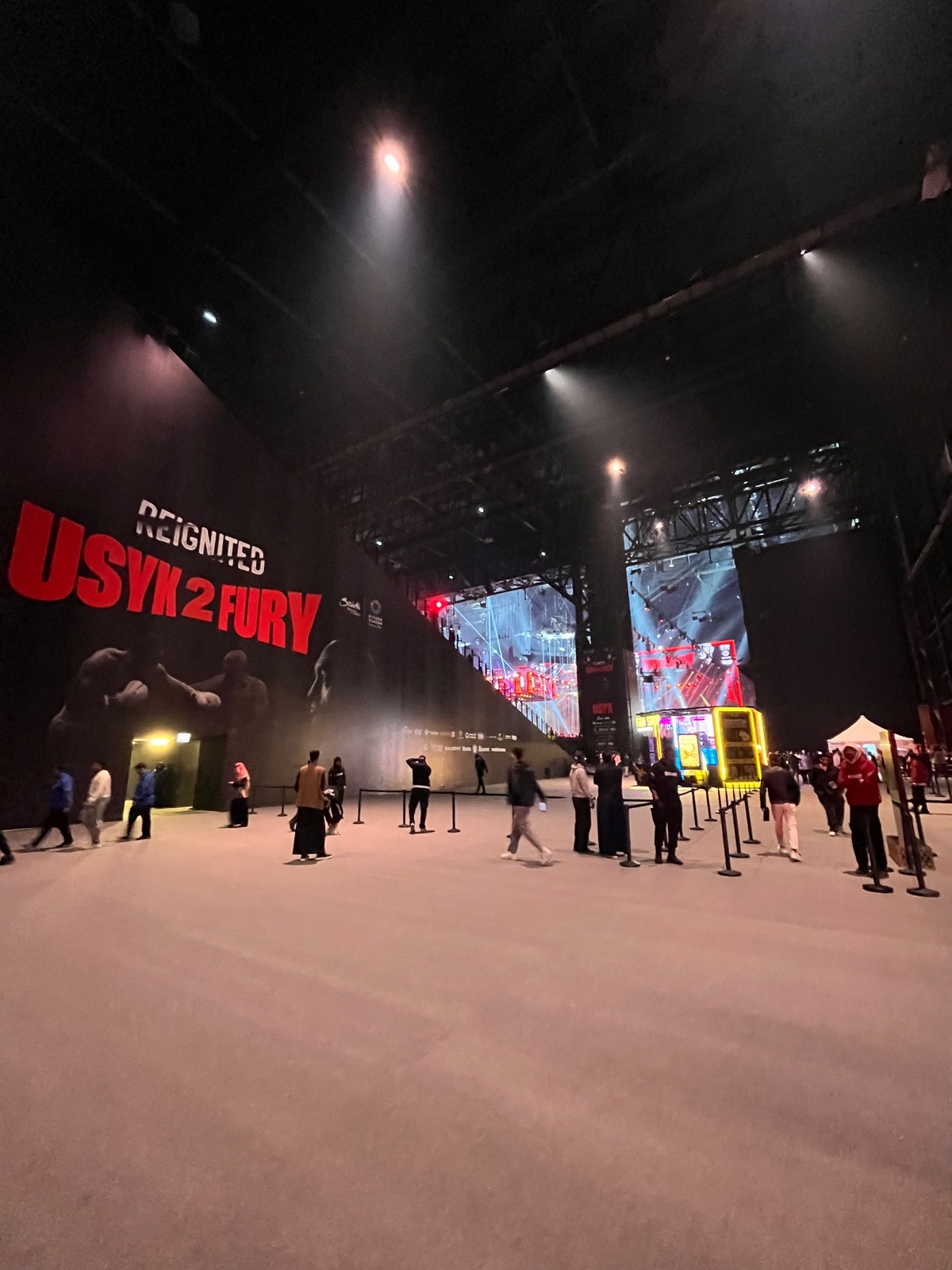 Zu Rammstein kam ich rein. Kirmes drum herum lustig, Catering und Sponsoren nochmal etwas hochwertiger als neulich bei Al-Hilal. Co-Main Event komplett verpasst weil ich dachte es macht Sinn, vor runde 1 von 10 nochmal schnell schiffen zu gehen. Intros und der Kampf selbst dann ehrlich gesagt total packend, ich fand den Fight richtig gut und das Ergebnis dann aber auch nachvollziehbar. Fury mich erst mit seiner Plautze schockiert aber dann doch einen tollen Kampf geliefert, Usyk einfach überragend. Auf dem Weg raus nochmal ein bisschen das VIP-Foyer sehen können - da gab es hoffentlich aber noch ein VVIP 😂 Ab Bekanntgabe Sprint zu den Ausgängen, morgen ist hier Werktag und wir haben 3 Uhr!