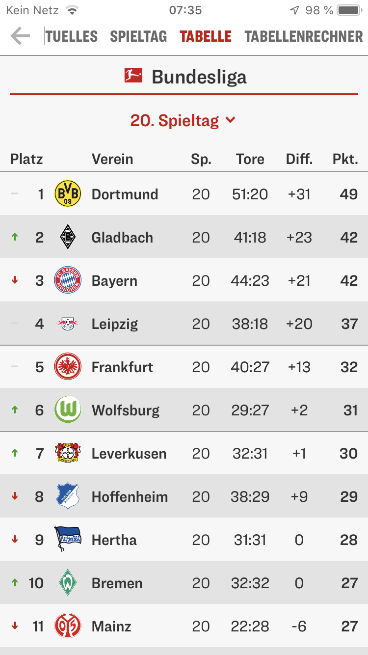 3 Punkte Rückstand auf die internationalen Plätze, theoretisch CL-Quali auch noch drin mit 7 Punkten zurück. Bevor Herrlich kam war Leverkusen auf dem 12. Platz.