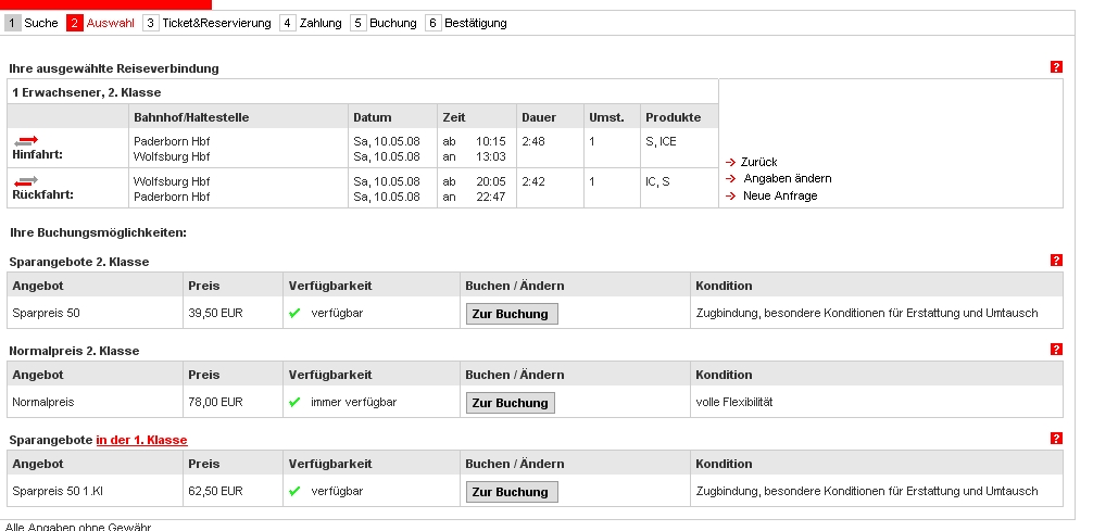 Ich hab jetz ma gekuckt und kann nur 'ne Hinfahrt für 29 € buchen. Zurück habe ich die "Vorverkaufsfrist nicht eingehalten". :zweifel: