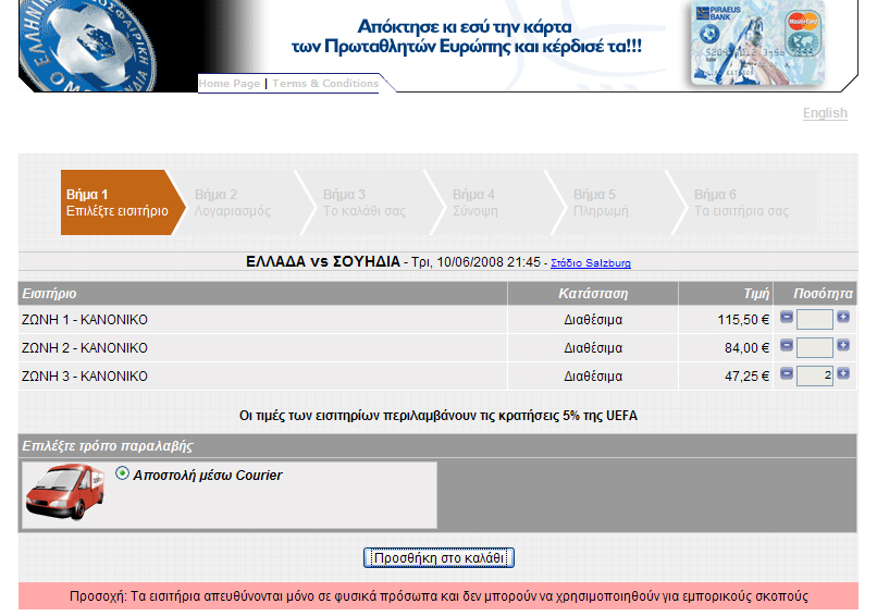 Attention: Tickets are available only for Greek and Cyprian citizens