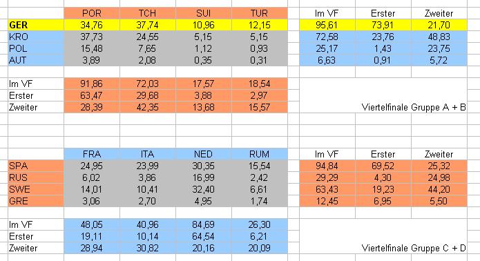 so, jetzt gibt's noch das Viertelfinale dazu (auf sehr guter Datenbasis):