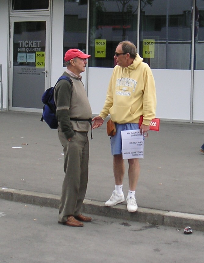 Ich habe eine Bitte: 2006 und leider auch am Mittwoch in Basel habe ich es verpaßt, diesen ganz speziellen englischen Tickethändler zu fotografieren. Er ist ca. 1,85 m groß, hat beinahe weißes Haar, ist braun gebrannt und lief in Basel mit FlipFlops durch die Gegend. Kurzum: der sieht aus wie ein Schauspieler. Kann mir einer von Euch ein Foto von ihm schießen? Ist für meine Nichte.