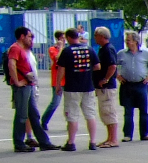 Ich habe eine Bitte: 2006 und leider auch am Mittwoch in Basel habe ich es verpaßt, diesen ganz speziellen englischen Tickethändler zu fotografieren. Er ist ca. 1,85 m groß, hat beinahe weißes Haar, ist braun gebrannt und lief in Basel mit FlipFlops durch die Gegend. Kurzum: der sieht aus wie ein Schauspieler. Kann mir einer von Euch ein Foto von ihm schießen? Ist für meine Nichte.