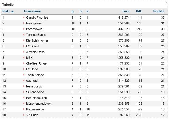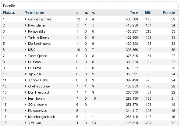 Das nenn ich jetzt mal wider ärgerlich: Mit 25 Punkten hätte man nur gegen 3 Teams verloren...:autsch: Aber gegen den Planer kann man ja mal verlieren ;):winke: