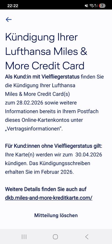 Meine private Kreditkarte wurde bislang noch nicht gekündigt und ich würde die eigentlich gerne bis Sommer weiterlaufen lassen, da ich diese als Garantie für Hotelbuchungen genommen habe.
