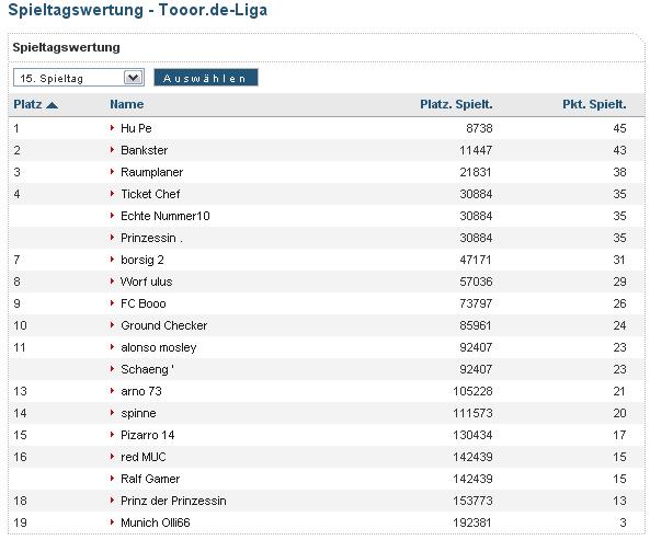 der 16. Spieltag is rum und ich stehe passenderweise auch auf Platz 16 ![]()