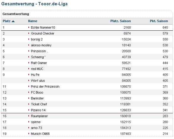 der 16. Spieltag is rum und ich stehe passenderweise auch auf Platz 16 ![]()